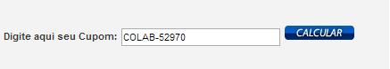 Para ganhar desconto em suas compras basta digitar o cupom: COLAB-52970 no seu carrinho de compras e clicar em calcular. Veja imagem abaixo